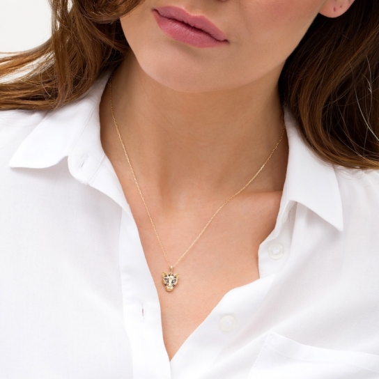 Representing the Super-Villain Cheetah, this diamond pendant captures your fearless spirit. Crafted in warm 10K gold and black rhodium plate, this choice showcases a sculpted cheetah head adorned with alluring champagne diamond eyes and a spot design in black rhodium. Radiant with 1/20 ct. t.w. of diamonds and a brilliant buffed luster, this pendant suspends along an 18.0-inch cable chain, with an additional closure ring at 16.0 inches, that secures with a spring-ring clasp. This exclusive fine jewelry collection inspires you to wear your strength, confidence and power.